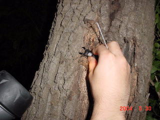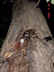 コナラが勢いよく樹液を出しまくっている。 カブト♂1 ♀2を確認。
