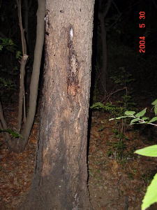 よく見ないと見過ごしてしまいそうな浅い樹皮めくれだが、46mm。 立派です。