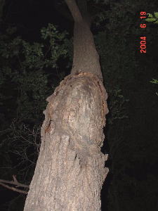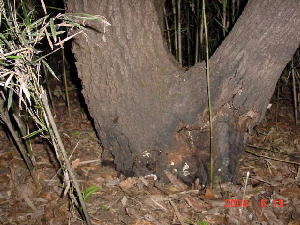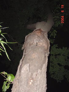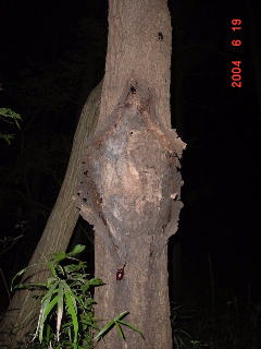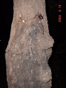 これが本命のクヌギ。 樹液が少し出ているがコクワだけ。