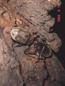 このクヌギは今までより多少にぎやかで、カブトが6匹、コクワ、スジがいた。