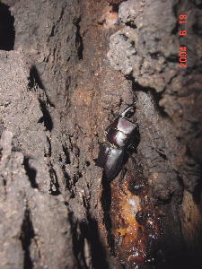 いい場所で樹液を吸うコクワ カブト♀のおしりとスジ