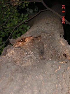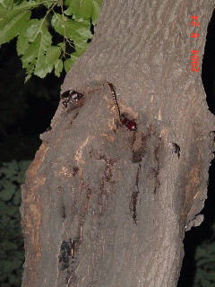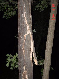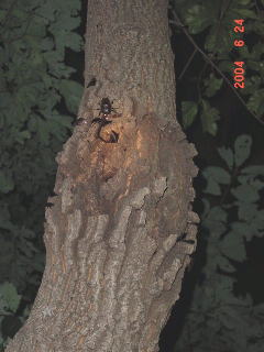 先日の台風の影響でこのとおり。 このコナラはもともと枯れる寸前で樹液が出ていたが、これで枯れてしまうだろう。