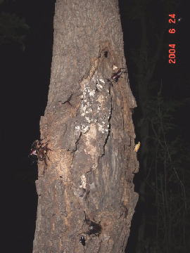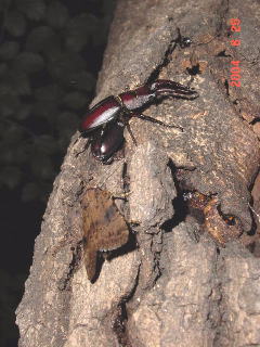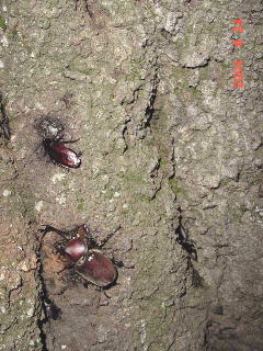 右のクヌギはいよいよカブトが占領するようになってきた。 ノコの占領時期は短いなぁ。 もっと長く占領しなくていいの?
