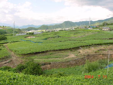 ぶどう畑が一面に広がっている。 山梨ならではの風景だ。
