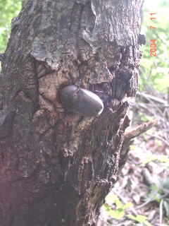 すべてのクヌギがボコボコしているが、昨年同様コクワとカナブンだけ。 このポイントにはミヤマは生息していないのだろうか。
