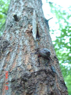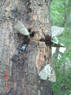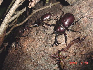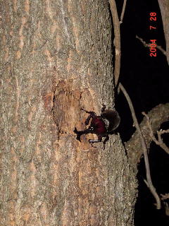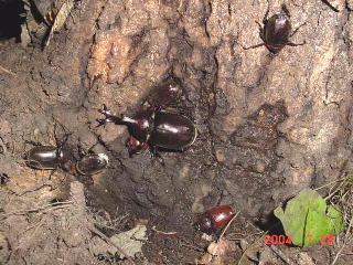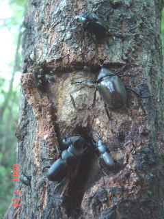 6月5日にコクワがいた場所にはカブトが3匹(1匹は角がひん曲がっている)
