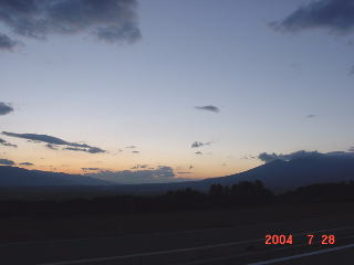 日が落ちて八ヶ岳のシルエットが浮かぶ