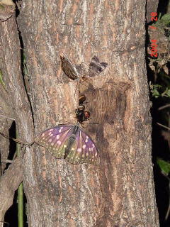 近くのクヌギにかろうじてカナブンとオオムラサキが見えた。