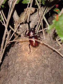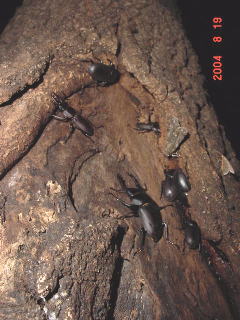 クツワムシがガチャガチャと大音量で鳴いている。 すでにシーズン終了間際。カブト♀がさみしく樹液を吸っている。