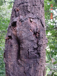 すべてのクヌギがボコボコしているので樹液が出ている確率が高い。
