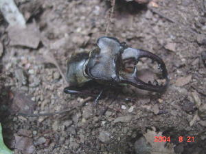 クヌギ林を見たがコクワだけだったので、そのまま車に戻ろうとしたらミヤマ♂の死骸が地面に落ちていた。
