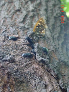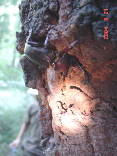 カブトムシが圧倒的に多く、ノコ、コクワ、ミヤマカミキリ、オオムラサキ・・・ なかなかすばらしい木だ。