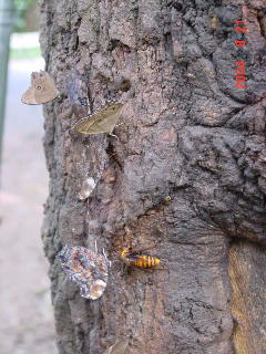 写真ではわかりにくいが、ノコ大歯♂、カナブン、スズメバチがいる。