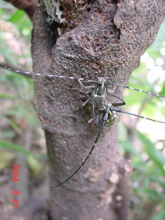 なんとコクワがはさまっていた。 キボシカミキリはイチジクの害虫でおなじみ。