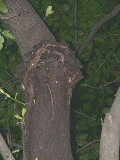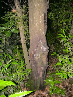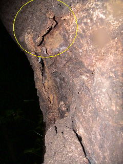 近くの別のクヌギ。 昨年はなかった気がするがヒラタも入れそうな樹皮めくれがある。
