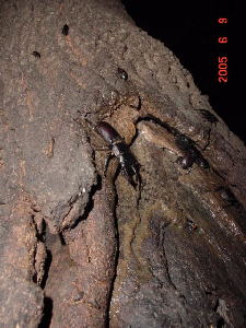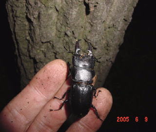 このクヌギは今年はめずらしく樹液がたくさん出ている。 樹皮めくれの端に力強い足のクワガタ発見! ヒラタ君47mm。