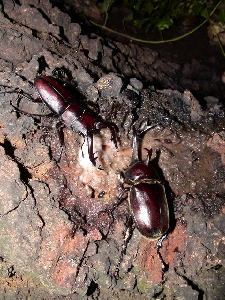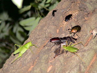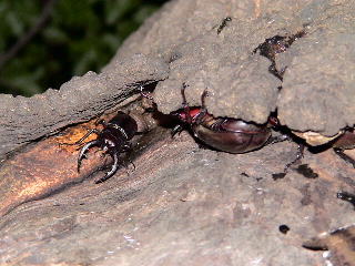 午前0時頃 ノコが樹液を独占 午前0時20分頃 カブトがやってきた