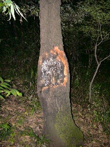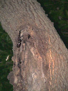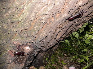 2001年7月25日のポイント2 カブトがうじゃうじゃいたクヌギ 樹液はあまり出ていない