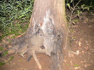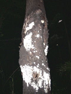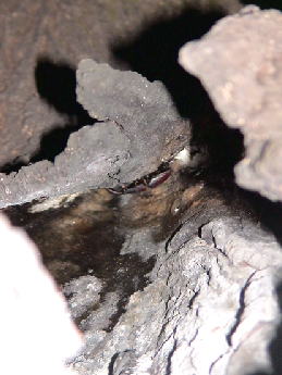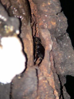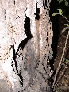 このような樹皮の間から採集するにはJの字の形にした針金があると便利だ。