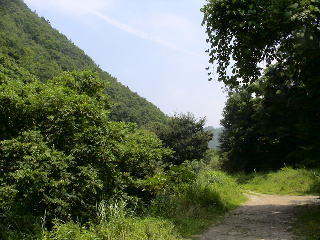 山に面した雑木林を歩いていく
