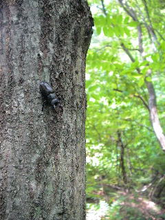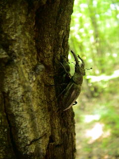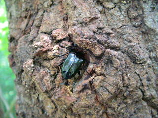 木々の緑がまぶしい。 ぼこぼこクヌギ林なのだが、今年は樹液の出がいまいちだ。