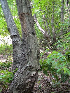 斜面にも樹液が出ているクヌギがぽつぽつとある。