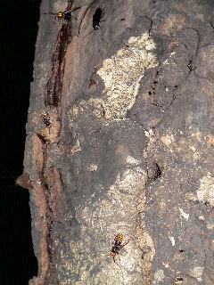 7月14日に5匹のヒラタがいたこのクヌギもすっかりスズメバチだらけだ。
