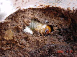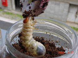 ベランダで飼育している神奈川ヒラタ幼虫の様子を見てみた。 ベランダのカブトムシ幼虫の飼育容器。 上3匹が神奈川ヒラタ 下4匹は埼玉ヒラタ 常温飼育なのでさすがにまだ前蛹にもなっていない。 さすがにヒラタ。幼虫でもはさむのが好きなのね。 朽ち木マットはほとんど土状態。 新しいマットと取り替えた。