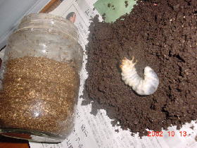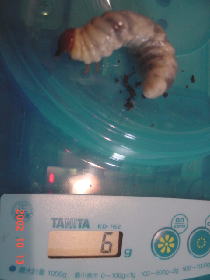 8月12日に割り出した神奈川産2匹と埼玉産2匹のえさ交換を行なった。 体重を見る限りでは、左が♂で右が♀かな。 右のマットは食べ尽くされて土状になっている。 左のビンに新しいマットを詰めた。 埼玉産1匹には黒い斑点があり、何かの菌に冒されたようだ。マットの上に出ていてもぐろうとしない。かわいそうだがだめかもしれない。 埼玉産のもう1匹は残念ながら死亡していた。