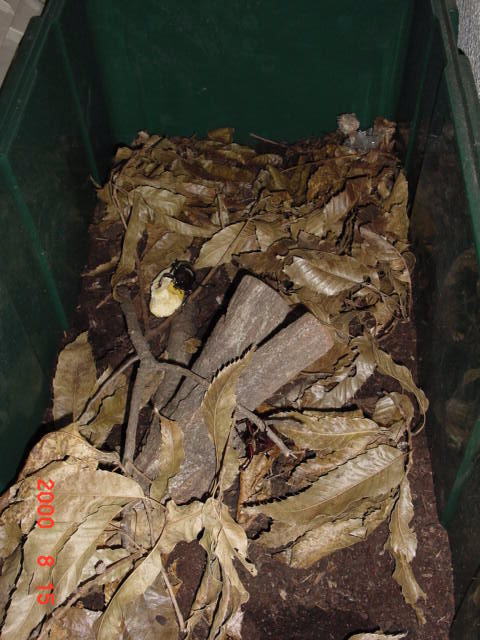 。 マットは幼虫の食べ残し腐葉土。 どうせまたこの容器で来年まで幼虫を飼育するのだから水そうなどで飼育するより手間が省ける 。 それに何と言っても広い。 成虫が寿命を全うしてしばらくしたら、土の中の幼虫を確認して大量の新しい腐葉土をブチ込み、幼虫飼育開始だ。 |
