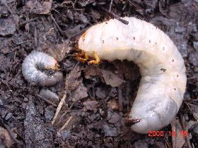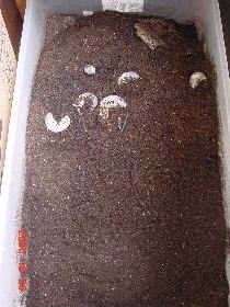 | ノコギリクワガタと同居 | 同じケースなのに・・・ 左はやっと2齢 直径1.5cm程度 右はさほど大きくはない3齢 直径4.5cm程度 |