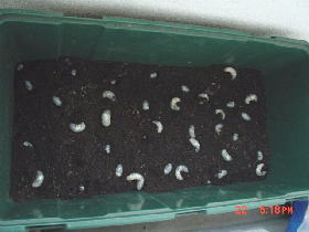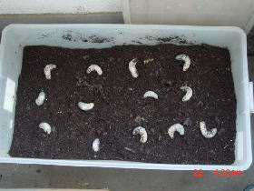 2001年野外採集成虫が産 卵したものが既に幼虫になっ ている。 |