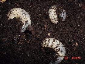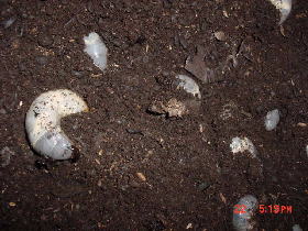 2001年7月に羽化した成虫 が人にもらわれていくまでの 約2週間の間に産卵したもの が既に幼虫になっている。 |