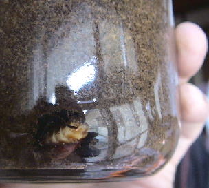 昨年飼育していたいろいろなクワガタの幼虫の食べ残しを微粒子マットにし、固く詰めてみたが”中古品”が気に入らなかったかな。