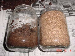 | 左:今まで飼育していたビン 右:新しいビン |