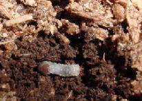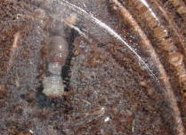 | 古いビンの底にいる幼虫 | 新しいビンへ移す |