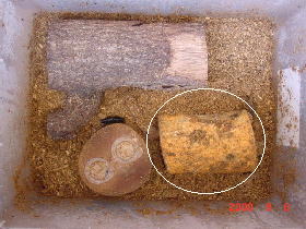 このままでは産卵木そのものがなくなってしまう。 それほど削りまくってくれた。 ここらで産卵木を新しいものに取り替えることにした。 ノコギリクワガタなんぞは削ったか削らないかわからない程度だが、オオクワガタの♀というのは 本当によく削るもんだ。 気に入ってくれるといいけど・・・