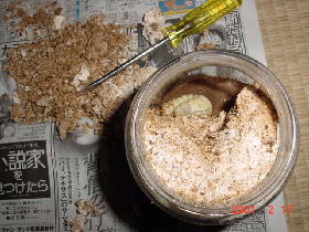 2本目の菌糸ビンはほとんど手付かずで、蛹室を作っただけだ。(ビン交換した刺激で蛹化するのはよくあるパターンらしい)