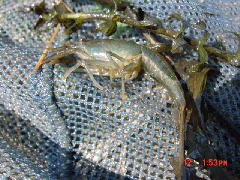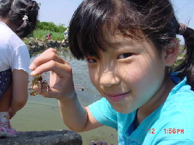 ザリガニ釣れたよ〜 (友だちの子と次女) ほうら、ザリガニよん! (友だちの子)