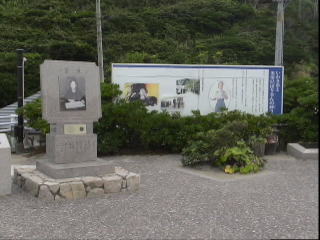 美空ひばりの記念碑があり、近づくと「みだれ髪」の歌が流れてくる。