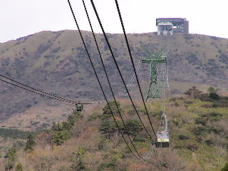 箱根園から駒ケ岳山頂まで登るロープウェイ。 山の木の葉はすっかり落ちて冬の装いだった。